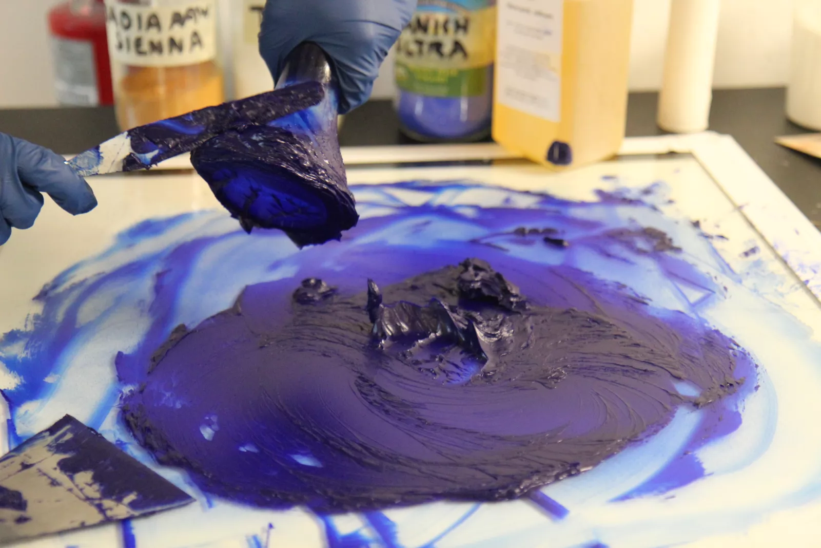 Students grind and mix their own paints in the course Painting III: Studio Materials and Methods.