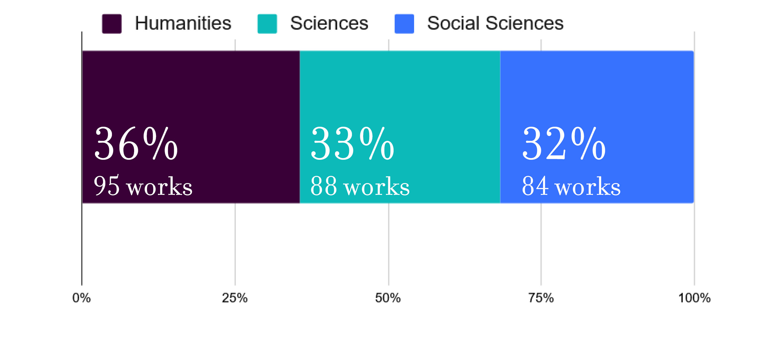 In 2025, Swarthmore faculty produced an astonishing 266 publications. This includes 157 peer-reviewed articles, 44 book chapters, and 15 books. Nearly 150 faculty members and academic staff, across all departments and most programs, contributed to this effort, which was shared equally by scholars in the Humanities, Sciences, and Social Sciences. Almost 100 works were published open access, with an additional 30 freely accessible publications.