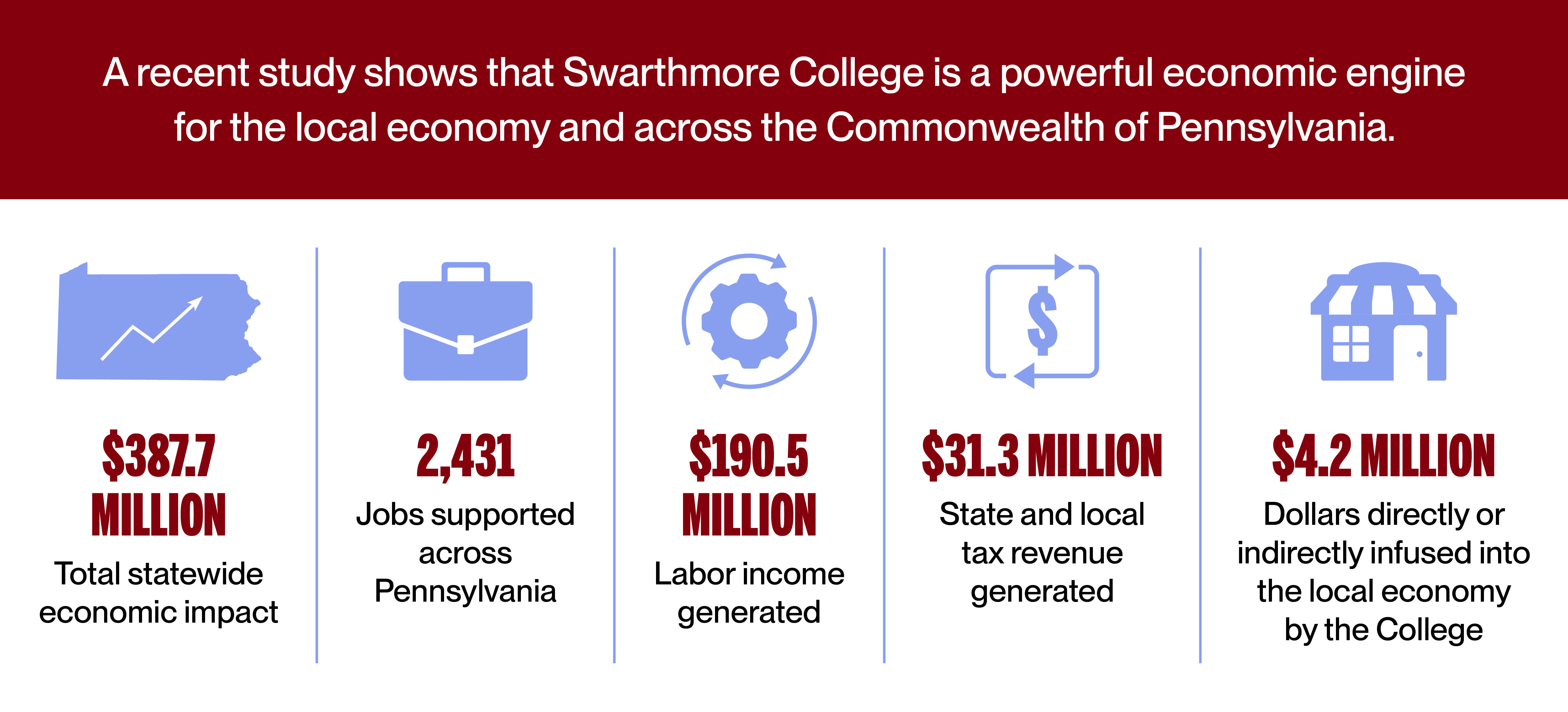 “These numbers illustrate the breadth of Swarthmore’s contribution — not only to education and research, but to the daily economic vitality of Pennsylvania,” Parker adds.