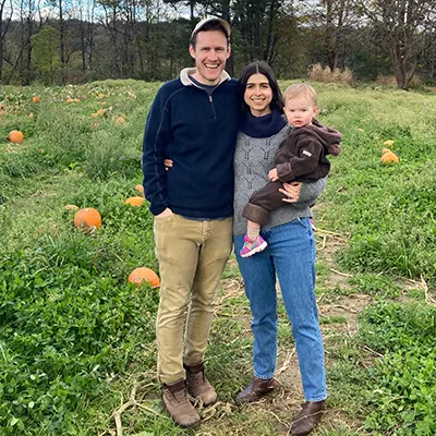"We met during freshman orientation, and I made a terrible first impression. We luckily had a second chance to make an impression on each other in junior year for Screw Your Roommate. Eric works in cybersecurity, and I work as a child and adolescent psychiatrist. We have been together for 16 years, married for nearly seven years, and we welcomed our baby boy, Felix, last March."