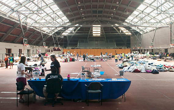 The fruits of their labor were evident early Friday morning, with the fieldhouse floor and two of its locker rooms packed with donations, and electronics and furniture stacked "floor to ceiling" in an art storage space across Fieldhouse Lane, says Brown. Meanwhile, a line of bargain hunters began forming at 6 a.m., swelling to around 250 before doors opened at 8 a.m.